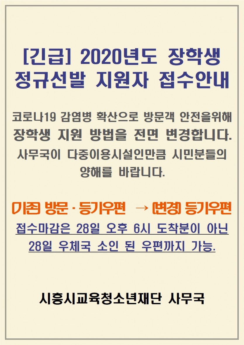 [공지] ※긴급안내※ 장학생 지원방법 변경