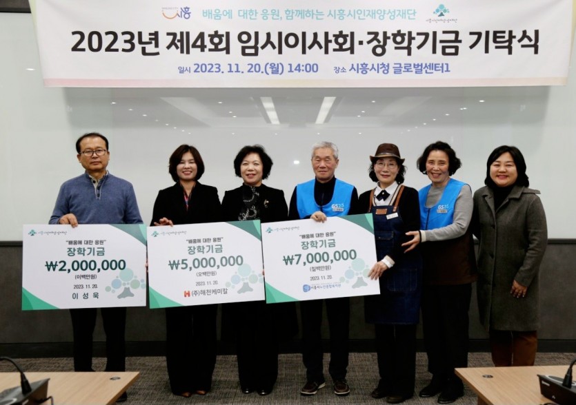 (재)시흥시인재양성재단(이사장 임병택)은 지난 20일 시청 글로벌센터에서 ‘2023년 제4회 임시이사회와 기탁식’을 개최했다.