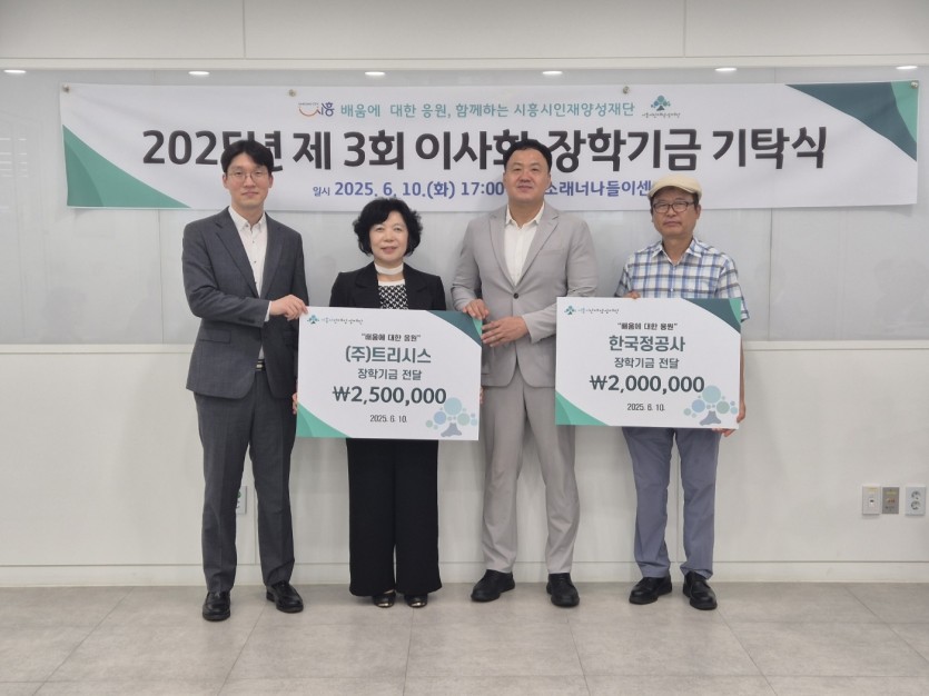 (재)시흥시인재양성재단(이사장 임병택)은 지난 6월 10일 소래너나들이센터에서 ‘2025년 제3회 이사회 및 장학기금 기탁식’을 진행했다.