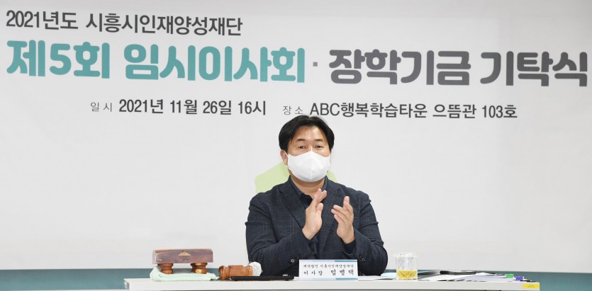 2021.11.26 (금) 시흥abc행복학습타운 103호에서 제5회 임시이사회 및 장학기금 기탁식이 진행되었습니다.