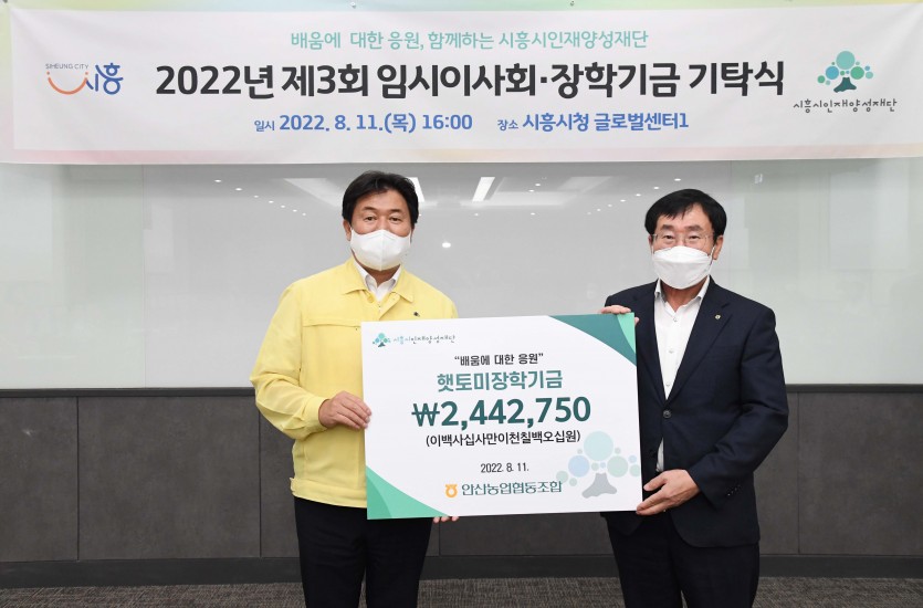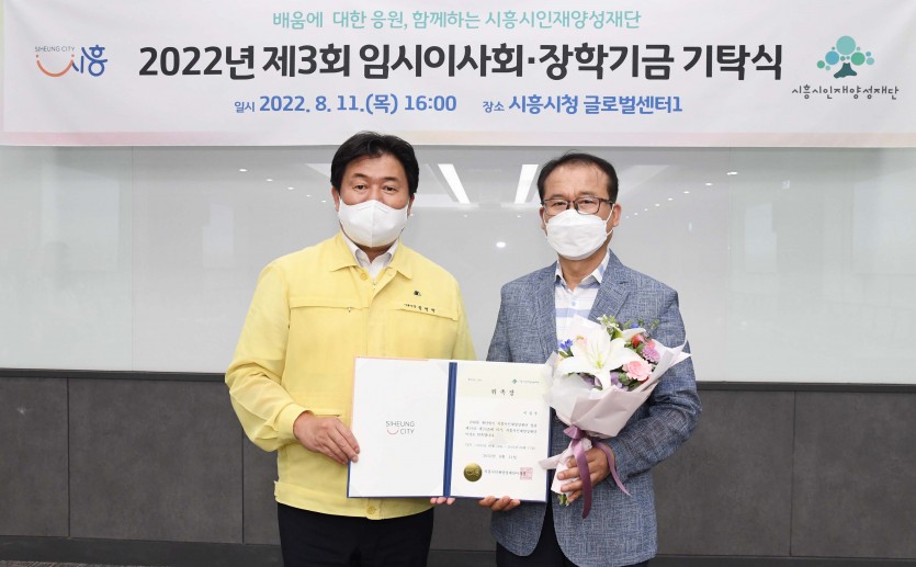 2022년 8월 11일 (목) 시흥시청 글로벌센터1에서 시흥시인재양성재단 2022년 제3회 이사회와 장학기금 기탁식이 진행되었습니다.