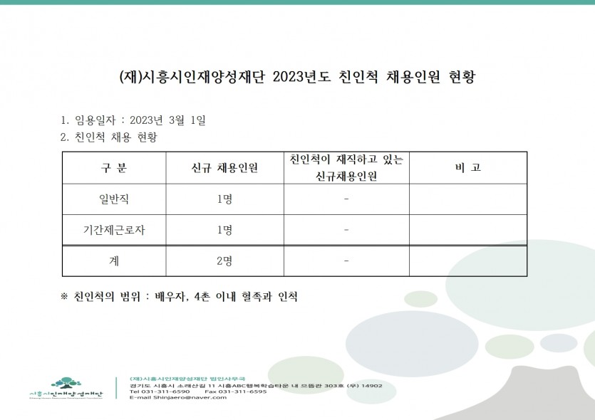 [친인척 채용인원 공개] 2023년도 신규채용 관련 임직원 친인척 현황 공시 (3월)