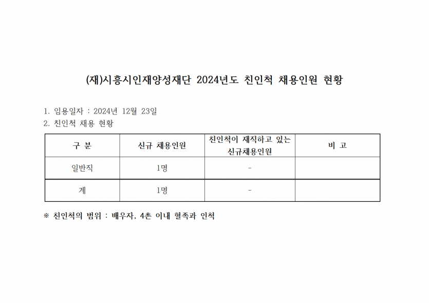 [친인척 채용인원 공개] 2024년 신규채용 관련 임직원 친인척 현황 공시(12월)