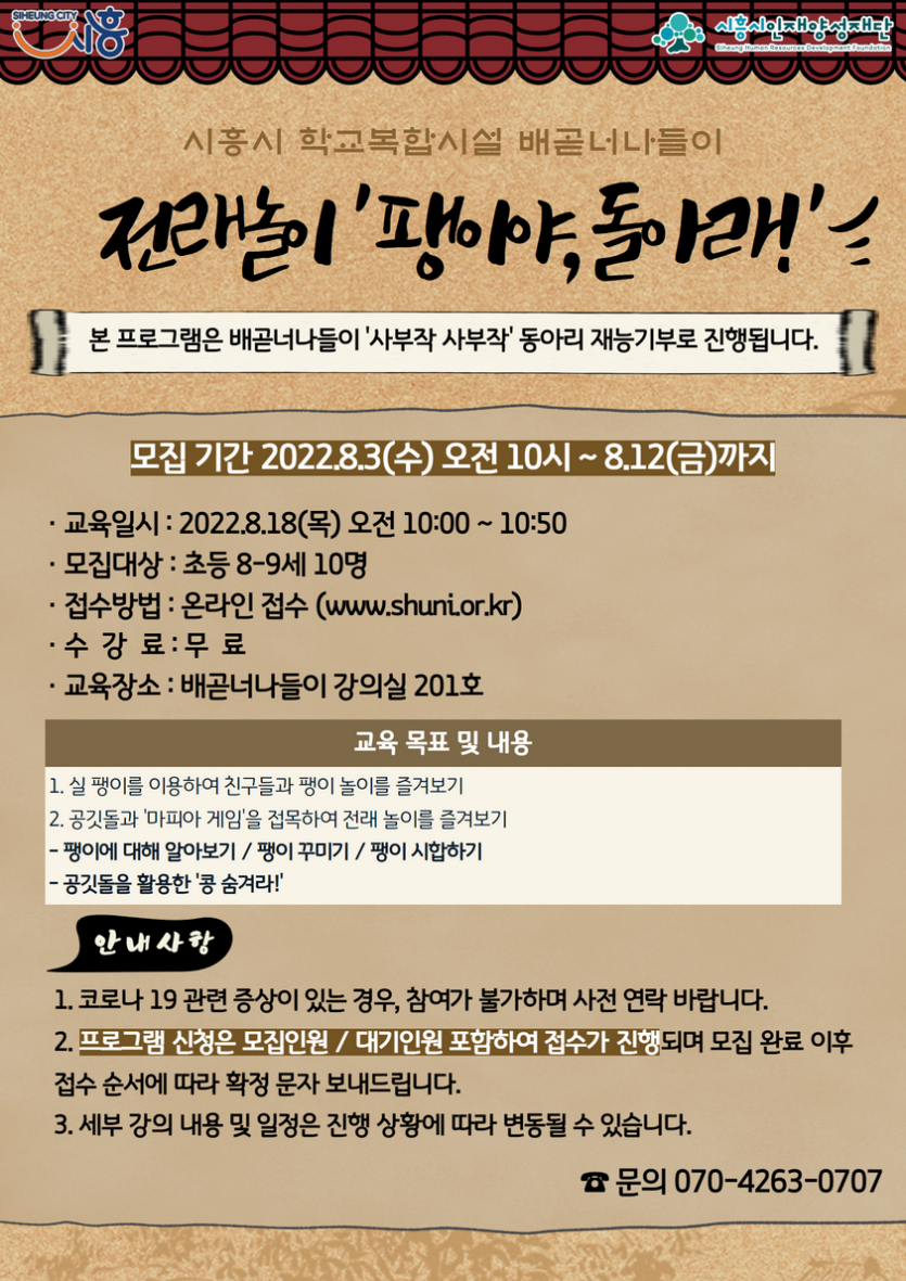 동아리 재능 기부 - 전래놀이 팽이야 돌아라 8-9세 프로그램