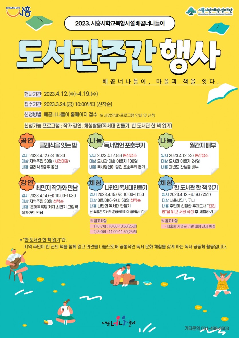 | 강좌명 | (도서관주간)-한 도서관 한 책 읽기(서평쓰기) | 접수방법 | 온라인 신청(선착순 접수) |