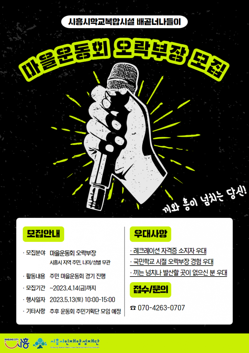 강좌명 마을운동회 '오락부장' 모집 접수방법 온라인 접수 또는 전화
