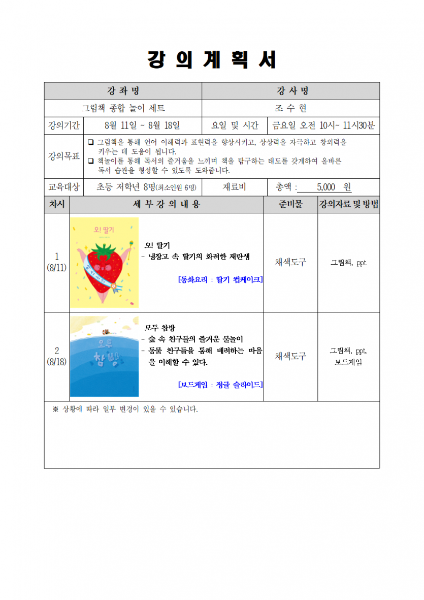 방학특강) 마을강사 재능기부 프로그램 - 그림책 종합놀이세트