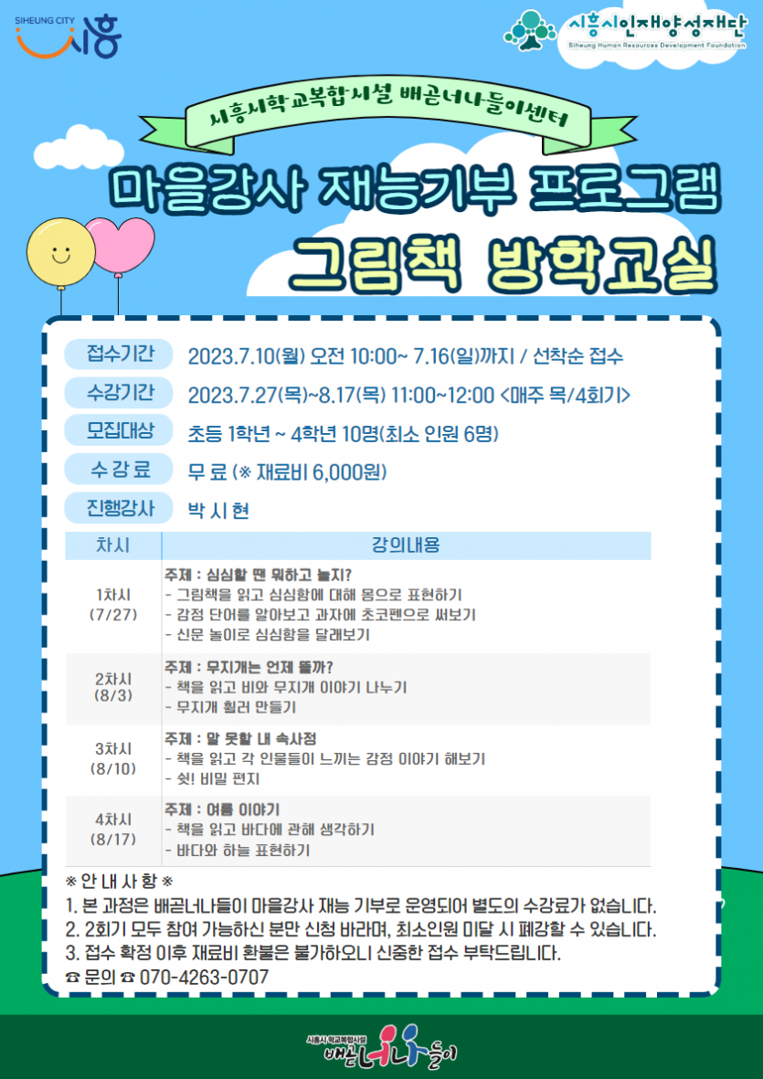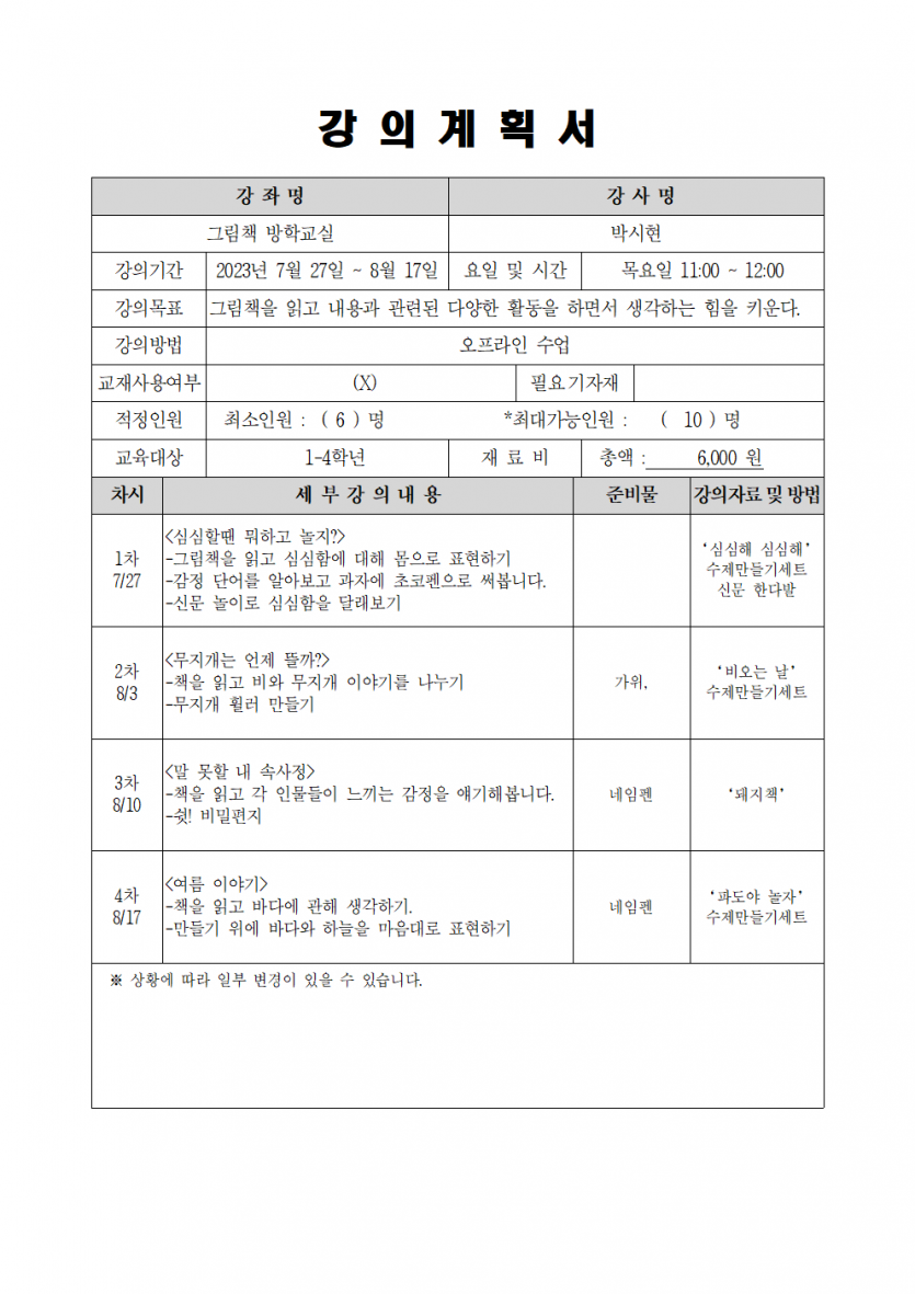 방학특강) 마을강사 재능기부 프로그램 - 그림책 방학교실