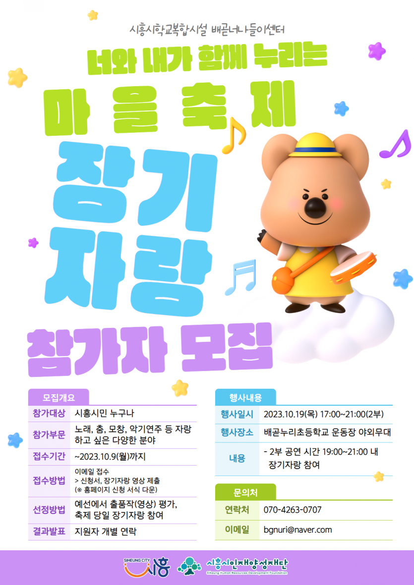 배곧너나들이센터 마을축제 장기자랑 참가자 모집