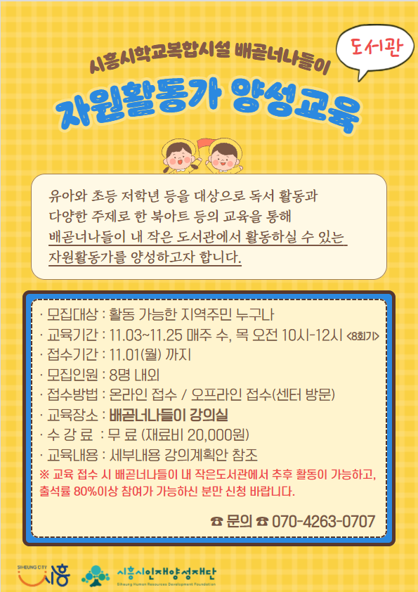 시흥시학교복합시설 배곧너나들이 4분기 교육프로그램