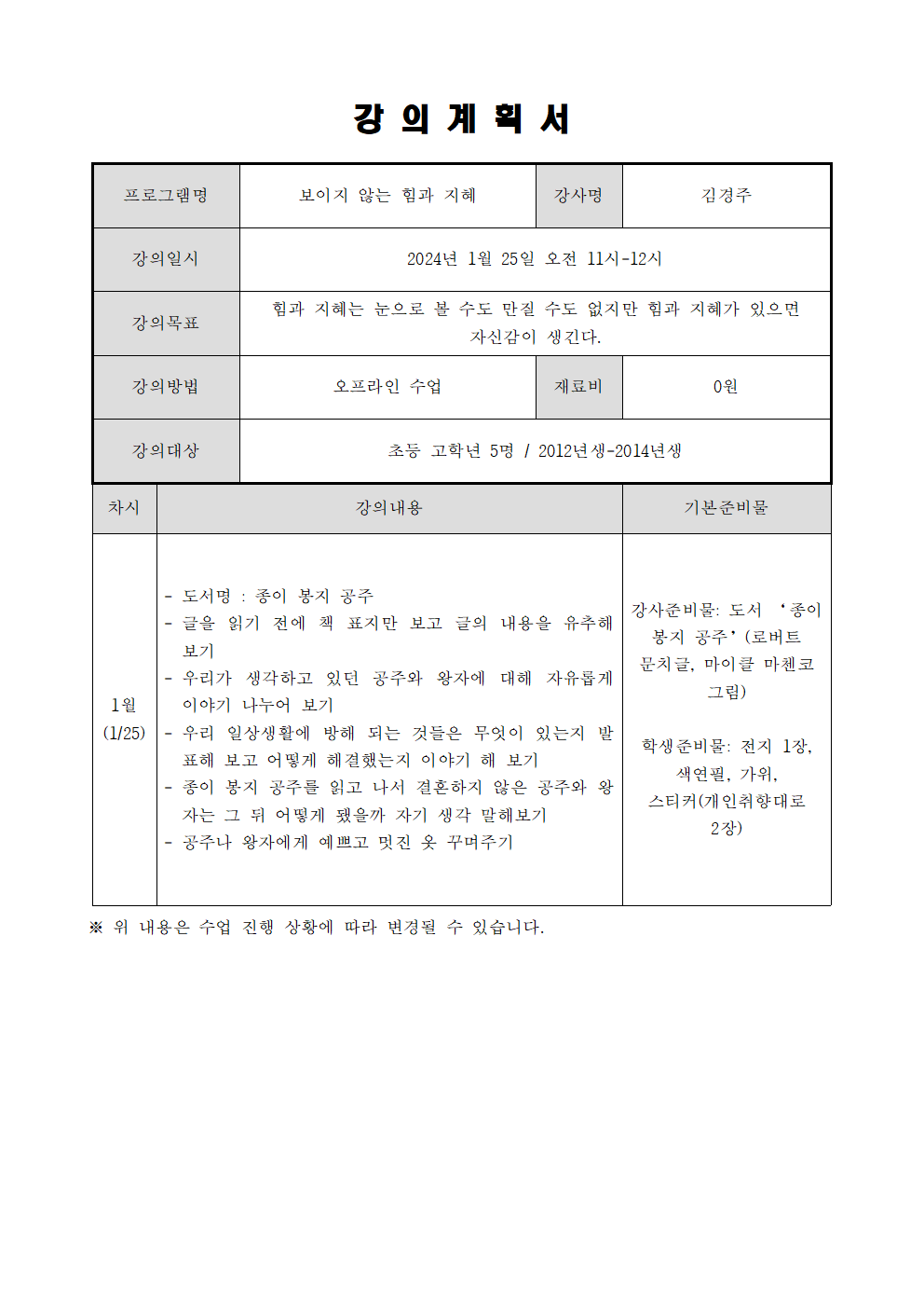 겨울방학 프로그램 - 보이지 않는 힘과 지혜