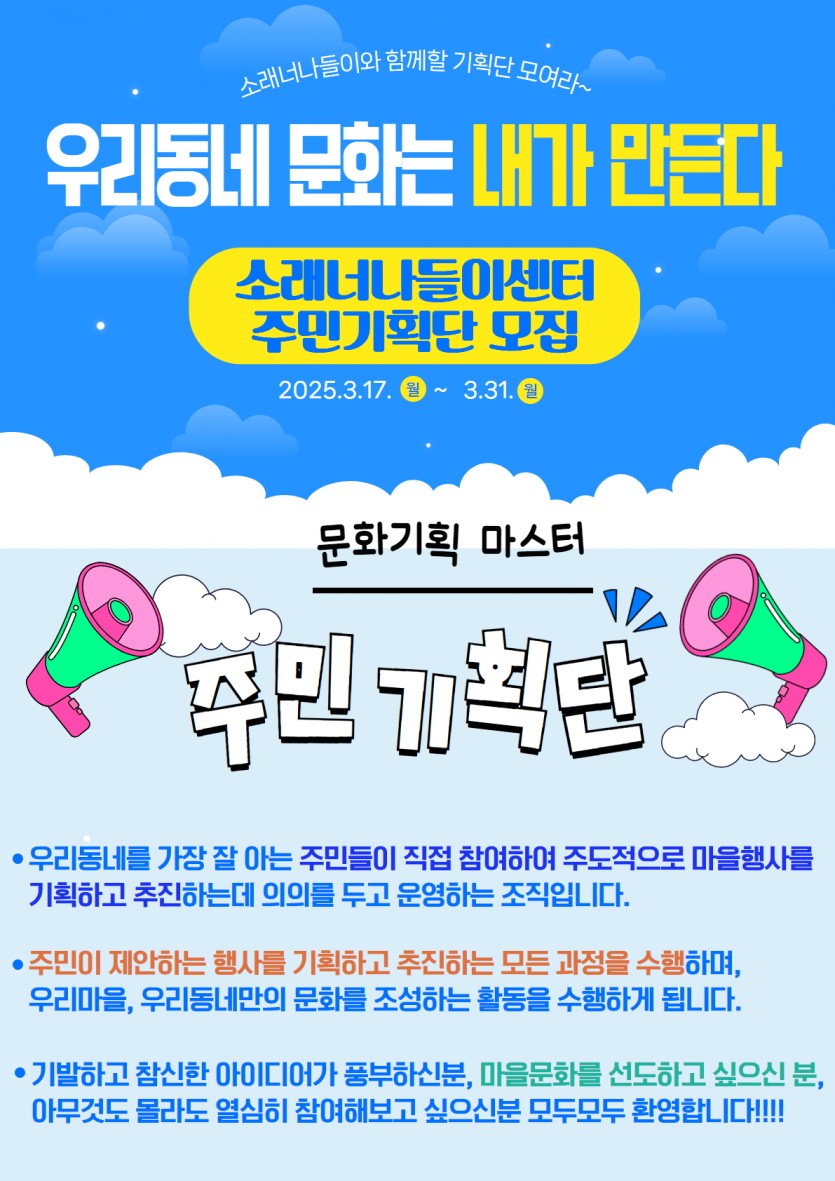 강좌명 2025년 소래너나들이 주민기획단 모집 접수방법 이메일 접수(soraeuni@naver.com)