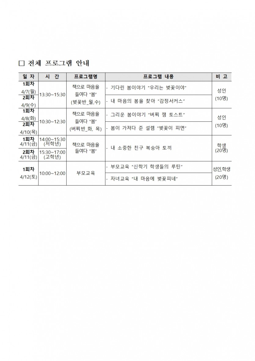★소래 도서관 주간★ (월,수_성인)「책으로 마음을 들여다 봄!」- 벚꽃반