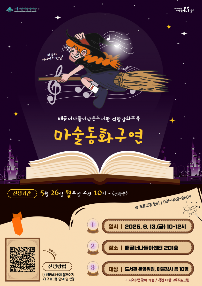 | 강좌명 | 2025년 작은도서관 운영위원회 역량강화교육 - 마술동화구연 | 접수방법 | 온라인 접수(선착순) |