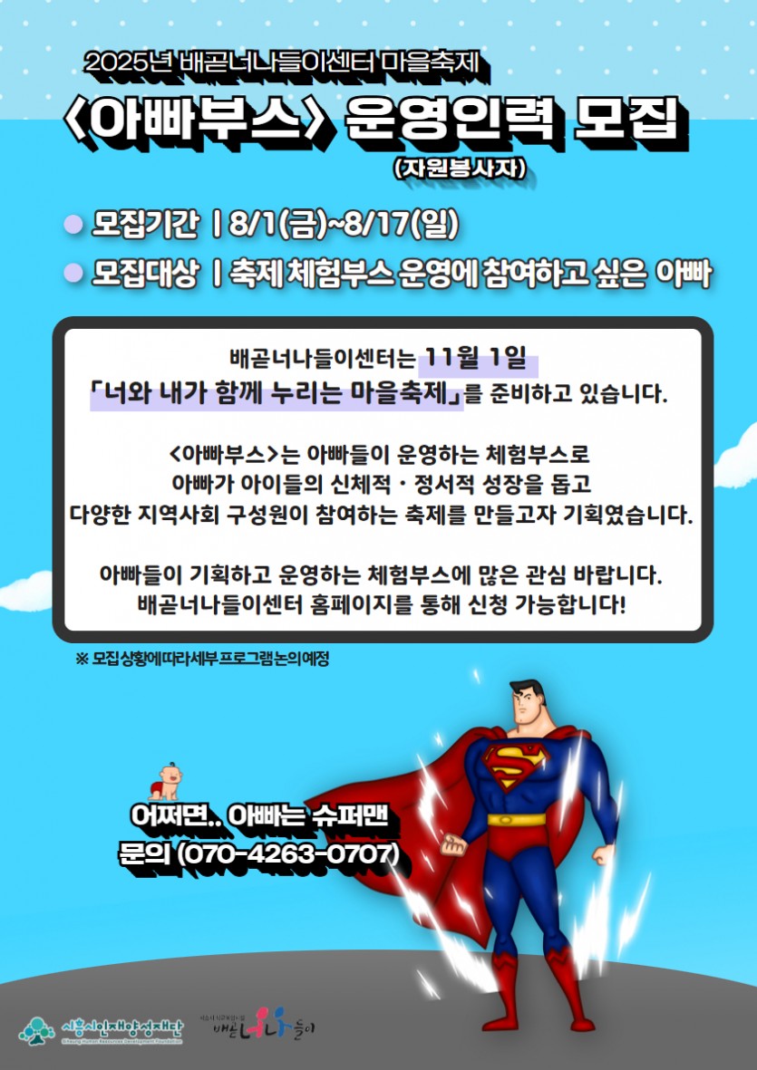 2025년 배곧너나들이센터 마을축제 아빠부스 운영인력 모집