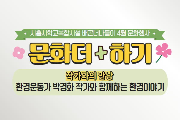 | 강좌명 | 배곧너나들이 4월 행사 문화더하기 - 작가와의 만남 | 접수방법 | 온라인 신청(선착순) |