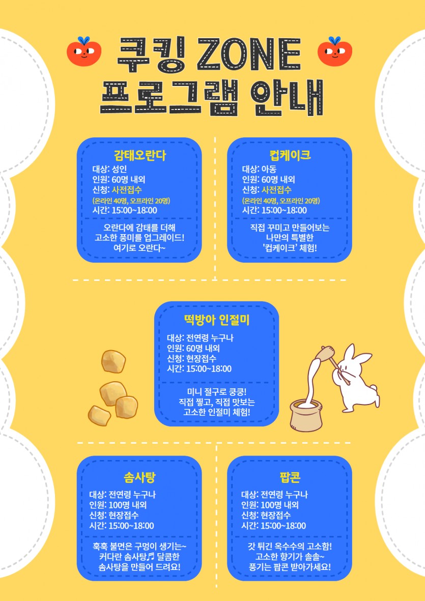| 강좌명 | [우리둘이 너나들이] 쿠킹ZONE-프로그램 안내 | 접수방법 | 사전접수(온/오프라인) 및 현장접수 병행 |