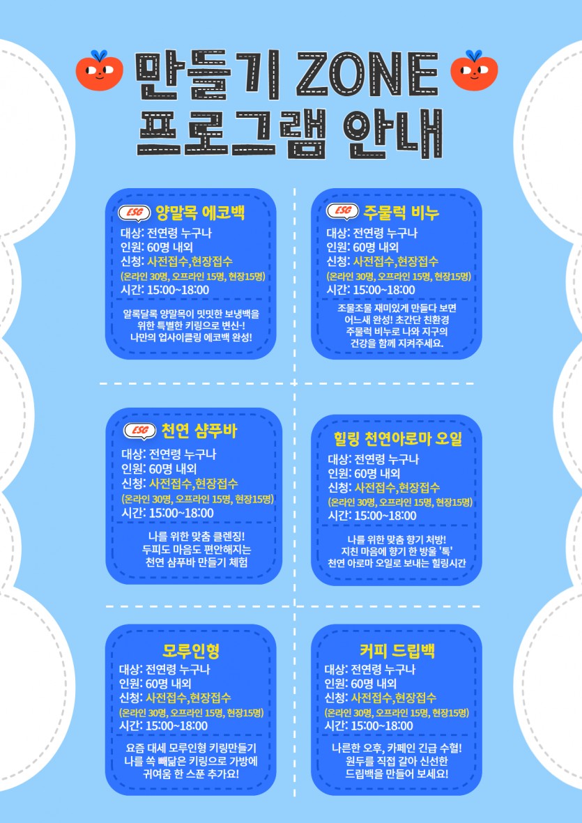 ※ 만들기 ZONE 은 최대 2개까지 신청