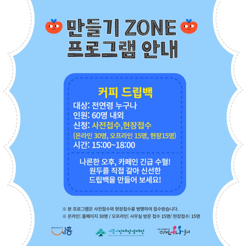※ 만들기 ZONE 은 최대 2개까지 신청