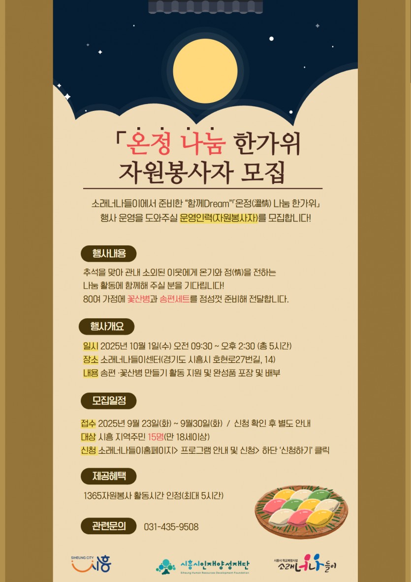 “함께Dream, 온정(溫情) 나눔 한가위” 자원봉사자 모집