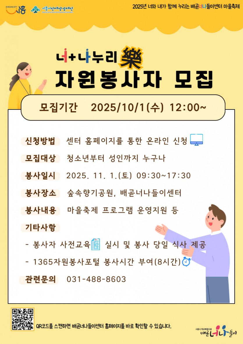 2025년 배곧너나들이센터 마을축제 자원봉사자 모집 안내