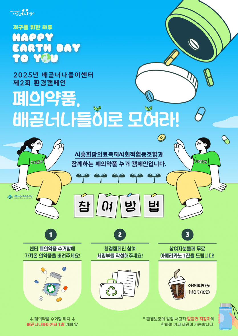 | 강좌명 | 2025년 제2회 환경캠페인「폐의약품, 배곧너나들이로 모여라!」 | 접수방법 | 현장접수 |