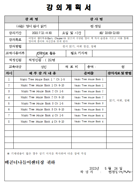 | 강좌명 | 3분기 교육프로그램 - 영어원서 쉽게 읽기 | 접수방법 | 온라인 신청(선착순 접수) |