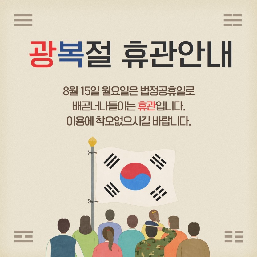 [공지] 배곧너나들이 광복절 휴관안내