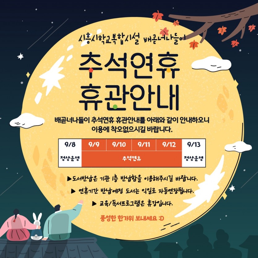 [공지] 배곧너나들이 추석연휴 휴관안내
