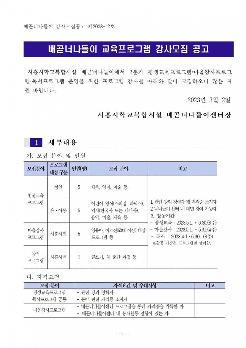 (공고)2023년 2분기 교육프로그램 강사 모집 공고.hwp