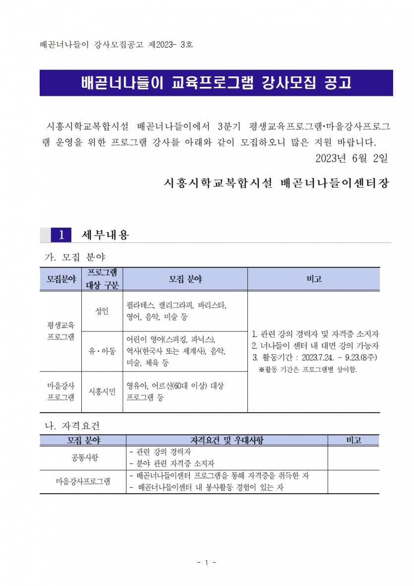 (공고)2023년 3분기 교육프로그램 강사 모집 공고.hwp