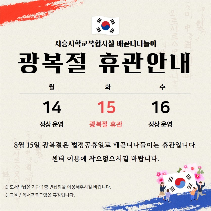 [공지] 배곧너나들이 법정공휴일(광복절) 휴관 안내