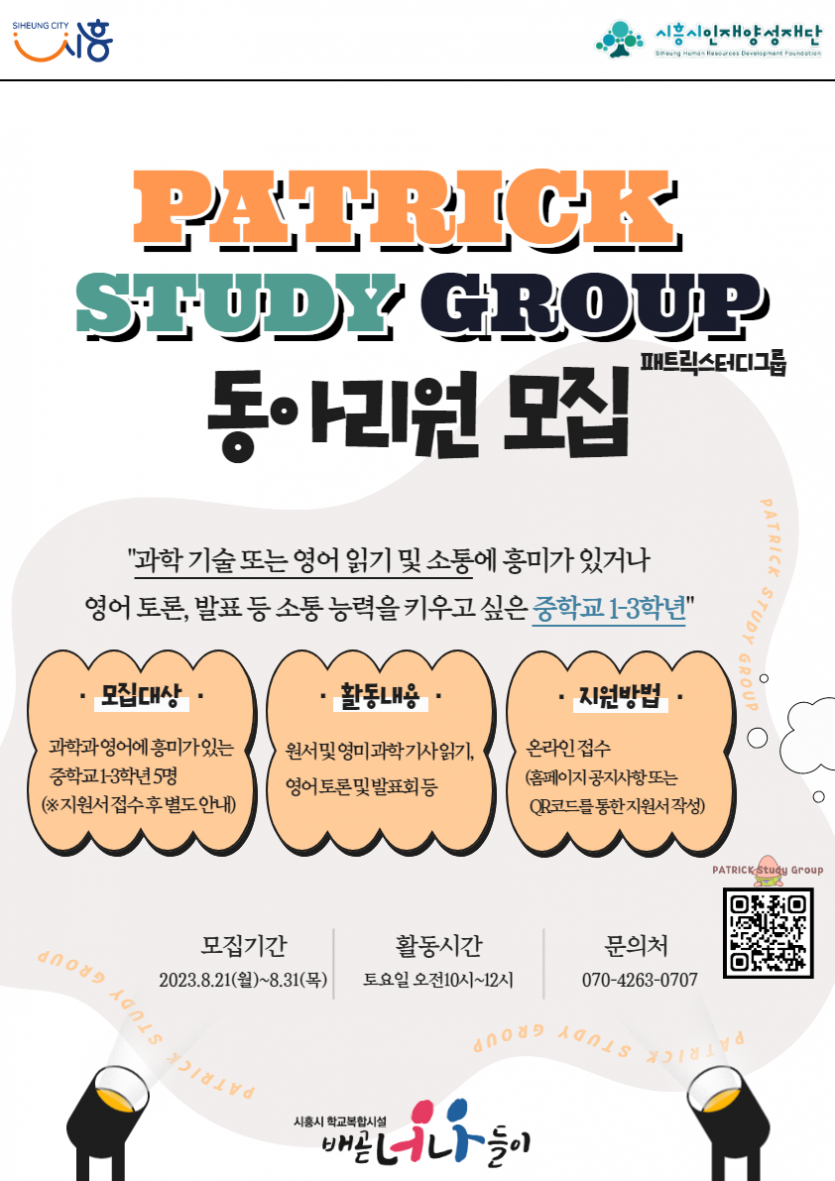[공지] 학습동아리 '패트릭스터디그룹' 동아리원 추가 모집