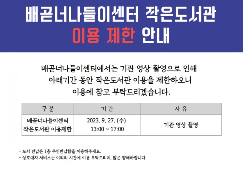 [공지] 배곧너나들이 작은도서관 이용제한 안내