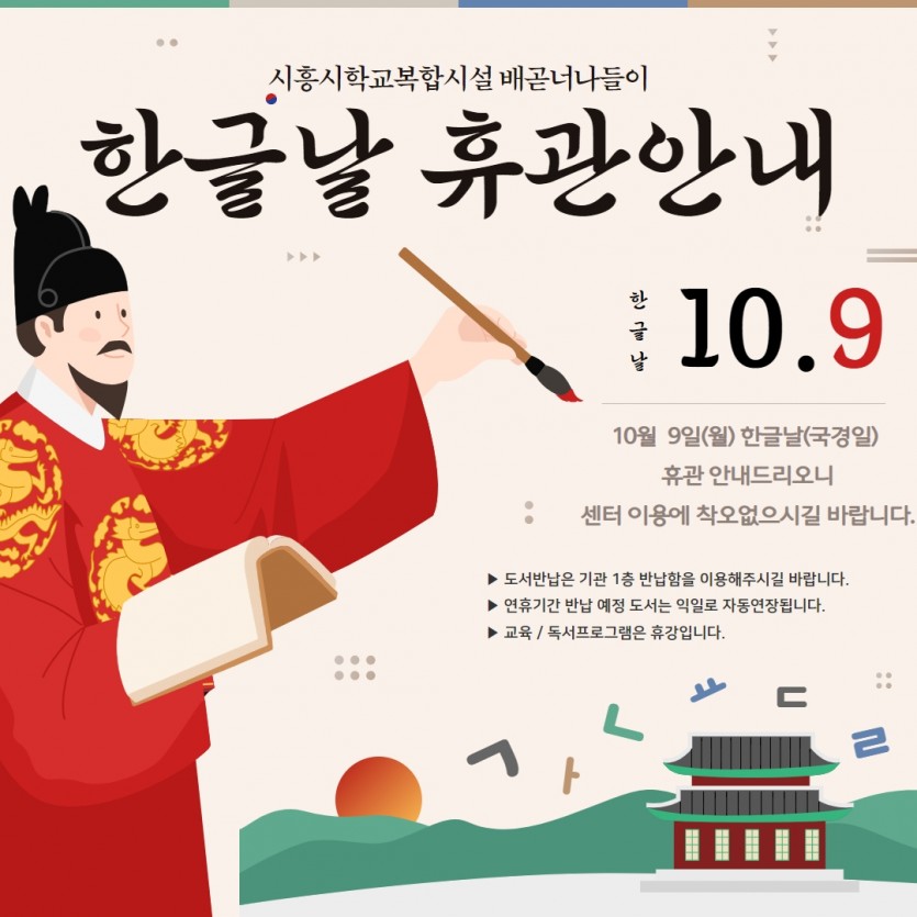 [공지] 배곧너나들이 국경일(한글날) 휴관 안내