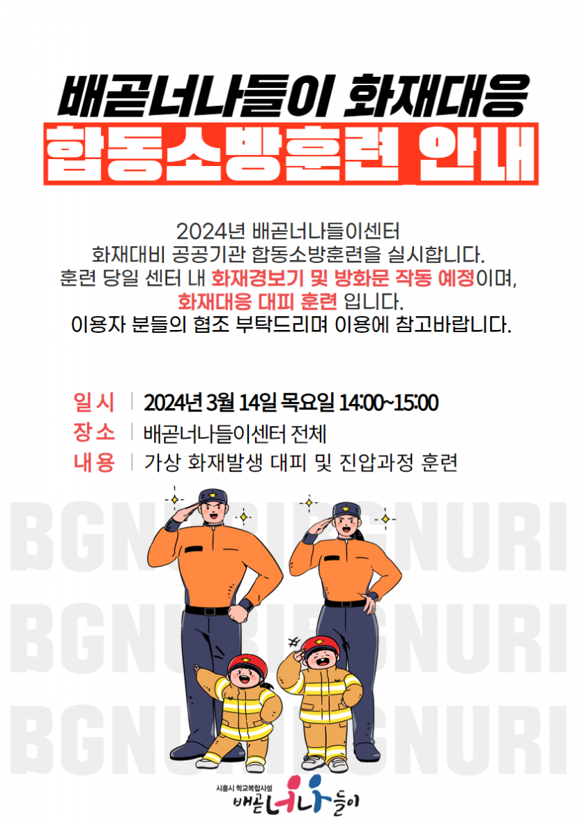 [공지] 배곧너나들이 공공기관 합동소방훈련 안내