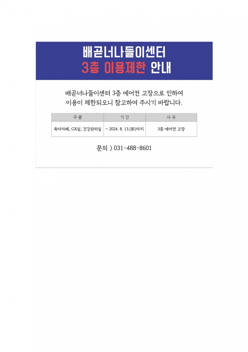 [공지] 배곧너나들이센터 3층 이용제한 안내