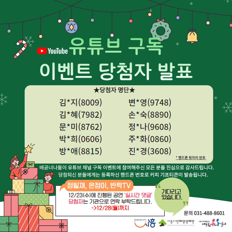[안내] 유튜브 구독 이벤트 당첨자 발표 / 실시간 댓글 당첨자
