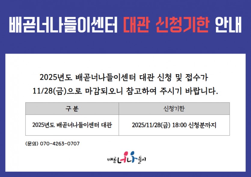 [공지] 배곧너나들이센터 대관 신청기한 안내(~11/28)