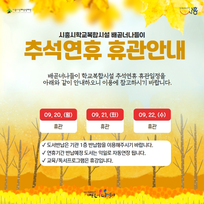 [공지] 배곧너나들이 추석연휴 휴관안내