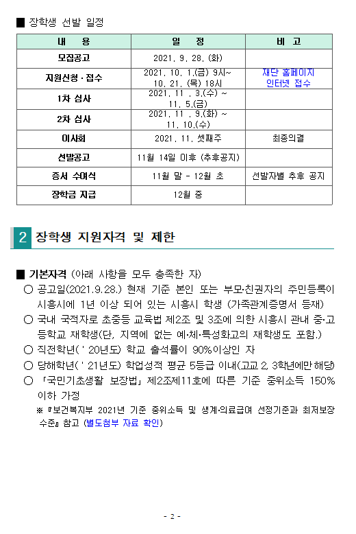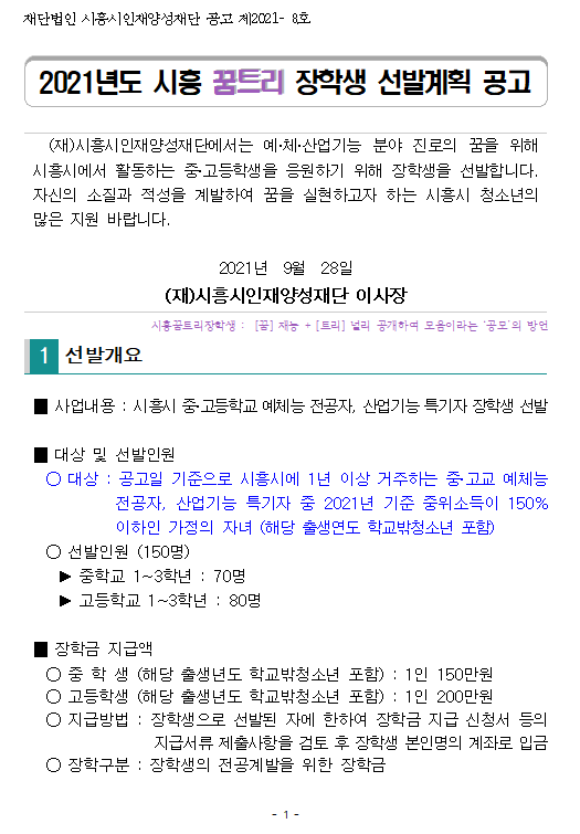 [공지] [공고] 2021년도 시흥 꿈트리 장학생 선발계획 공고(시흥시인재양성재단)