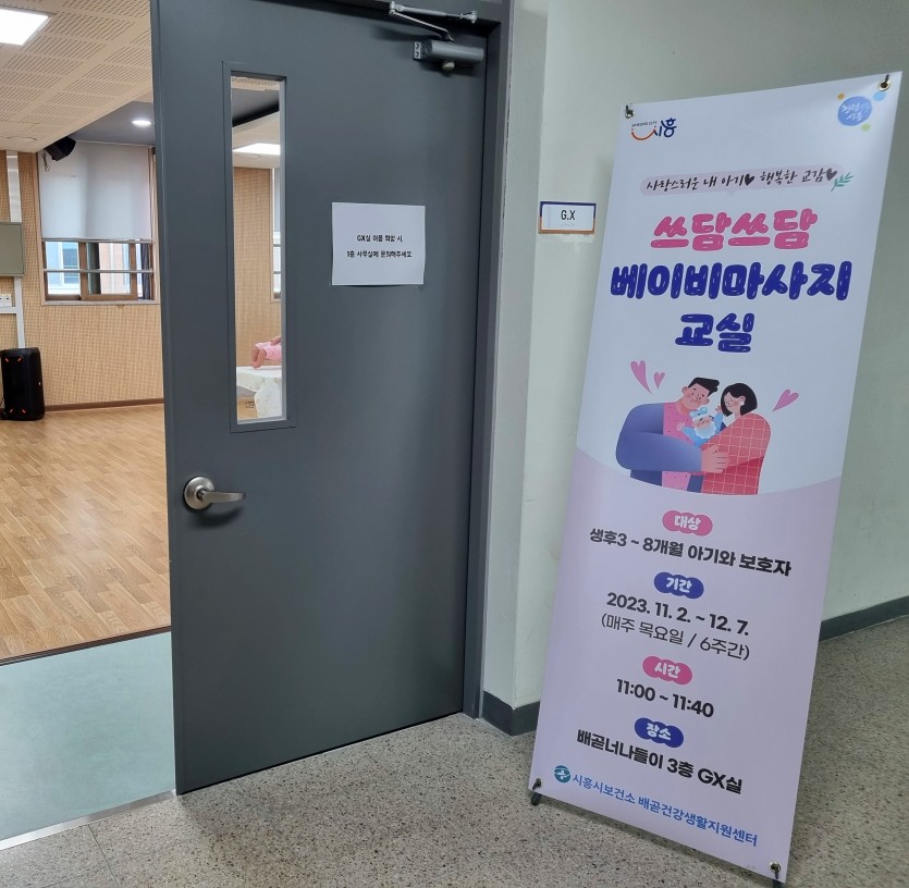 시흥시보건소 배곧건강생활지원센터에서 주관하는 "쓰담쓰담 베이비마사지 교실"이 배곧너나들이에서 6주간 진행됩니다.