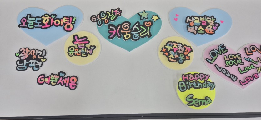 캘리캐리 동아리는 캘리그라피와 비슷할 수 있지만 다른 특성을 지닌 POP에 대해 알아보고 작품을 만들어보는 시간을 가졌구요.