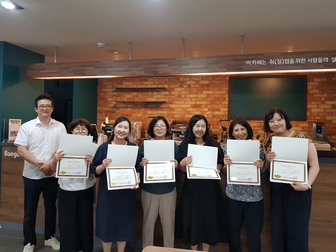 교직원 모두 즐겁고 신나게 바리스타 과정을 이수하여 바리스타 1급 자격증도 획득 하셨답니다.
