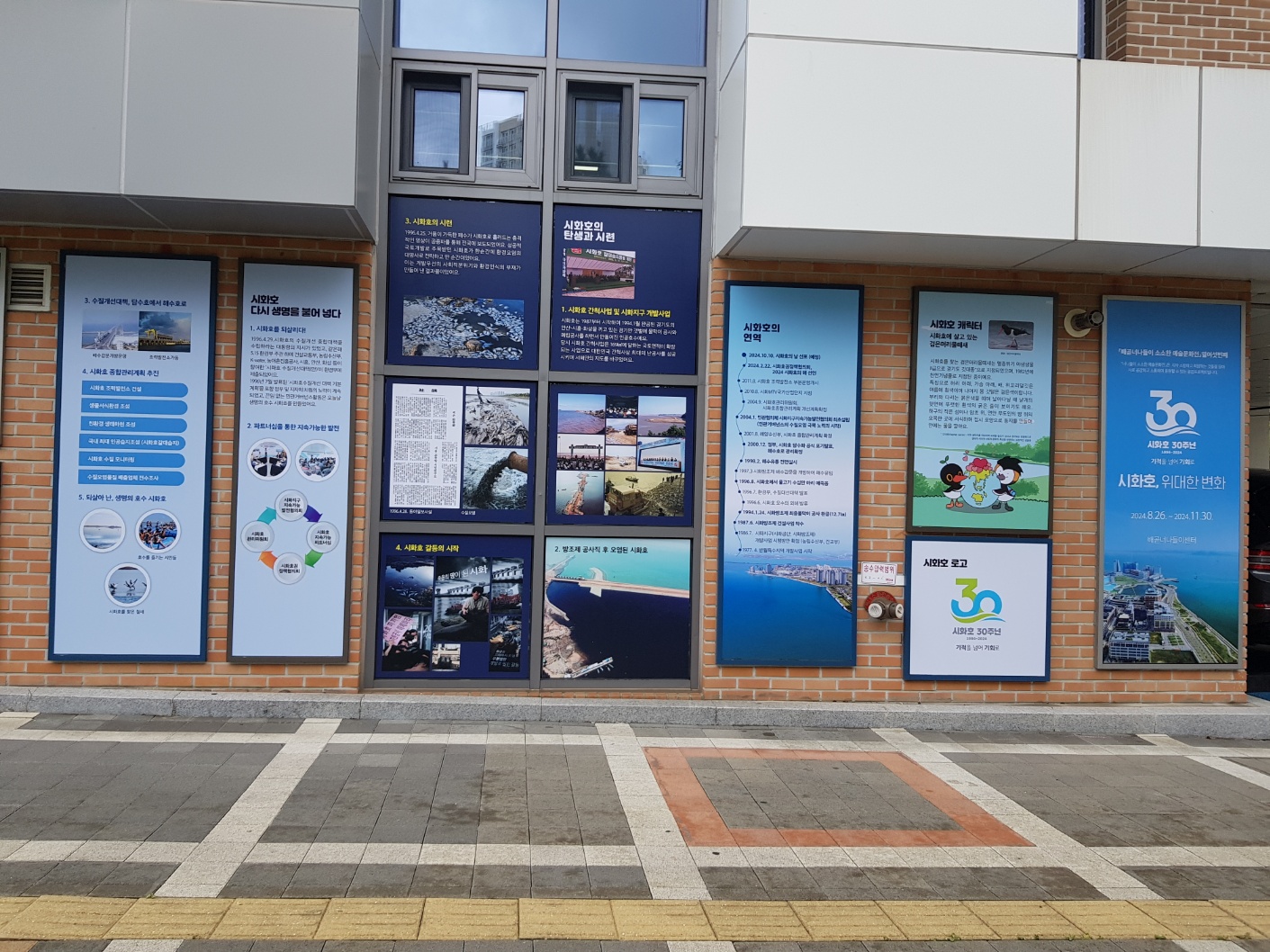 이번 외벽전시 주제는 시화호 변천사를 통해 환경보호의 필요성과 이를 실천하는 시흥시의 밝은 현재와 미래를 그려보았습니다.