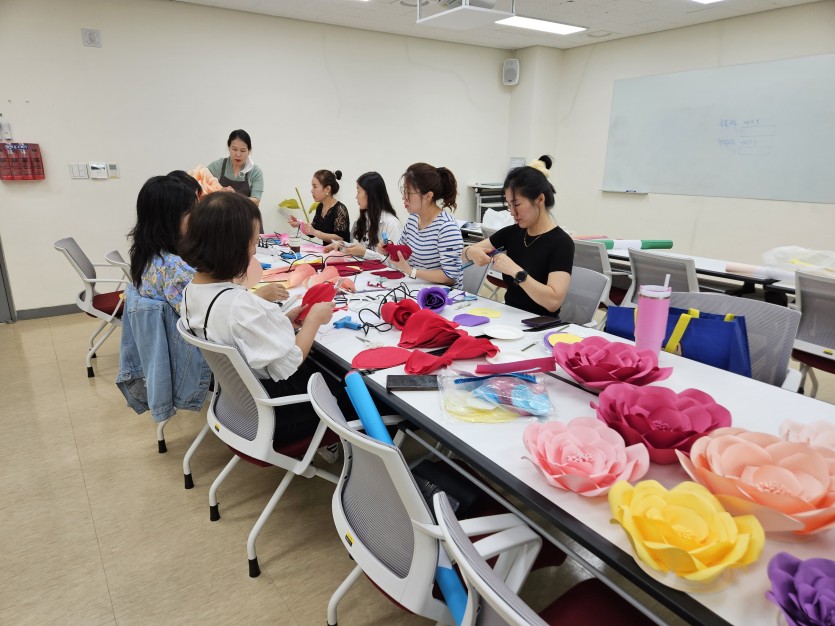 <우리 마을 포토존만들기>는 센터 개관 5주년을 맞이하여, 지역주민이 페이퍼 플라워를 직접 만들고 포토존을 꾸며 완성해보는 기획특강프로그램입니다.