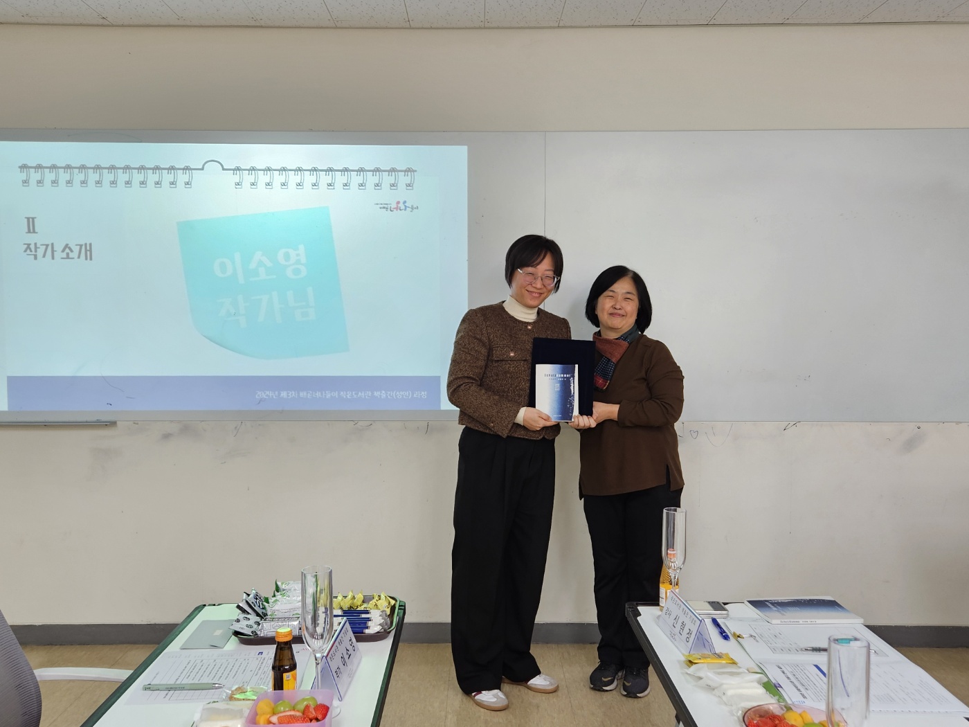 작가님들의 책 소개, 의미있는 구절 낭독, 이수증 수여 등을 진행하며