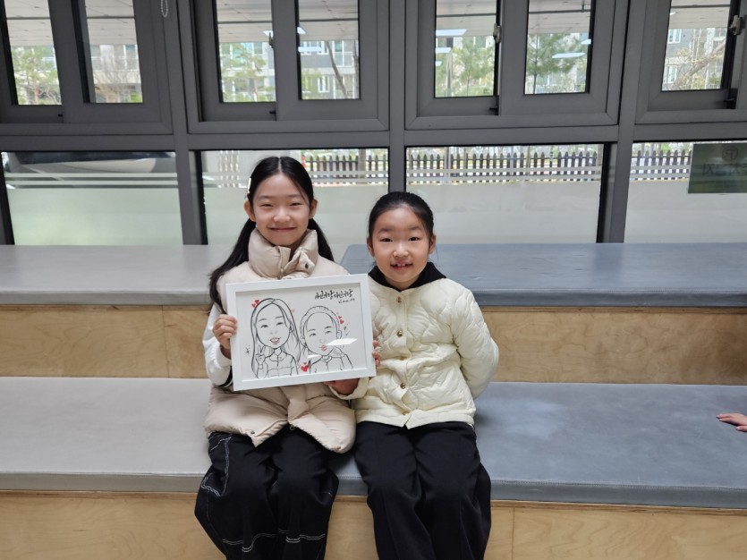 가족 캐리커쳐를 위해 아빠, 엄마, 아이들 온 가족이 총출동했어요!