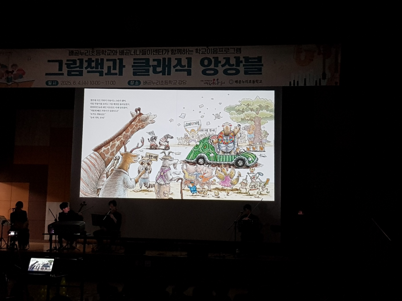 '슈퍼 거북', '슈퍼 토끼' 두 권의 그림책과 9곡의 클래식 연주로 구성되어 진행된 공연으로