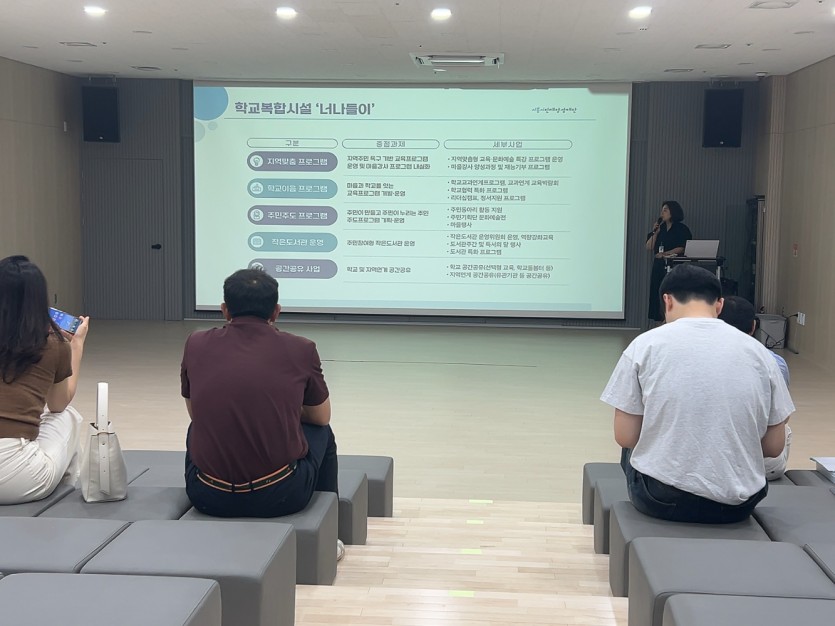 여러 학교 관계자분들이 함께한 학교복합시설 우수사례 답사가 진행되었습니다.